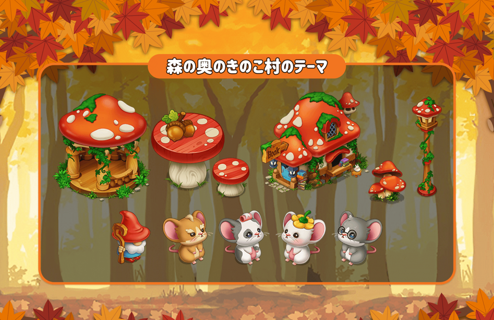 魔法の森のきのこ村、復刻登場! 緑の草原にぴったりな赤いきのこランドスケープシリーズの復刻版が販売開始されました‼ ねずみたちが農場に元気を届けてくれます 前回購入できなかった方は、今回はぜひお見逃しなく! ⚠️ 詳細なスキルについては、購入前にゲーム内の説明をご参照ください! 販売期間:10月1日 メンテナンス後 ~ 10月26日 23:59