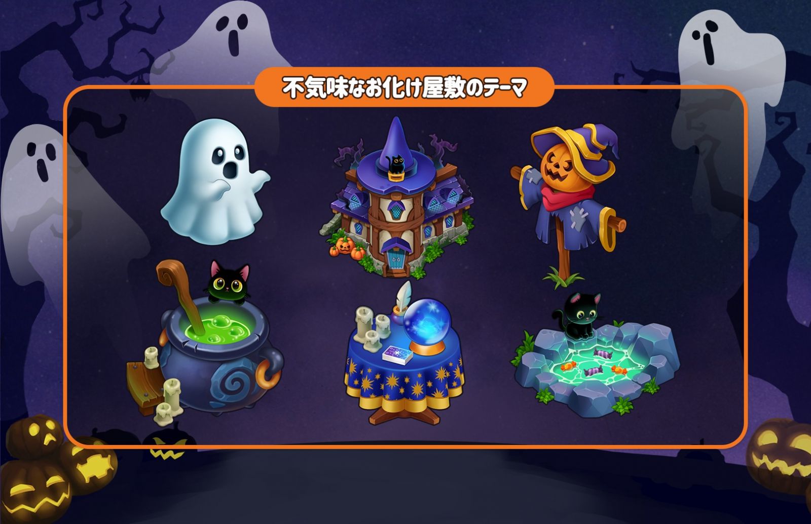 魔女の猫といたずら好きなおばけたちが、パーティーの準備をしているよ